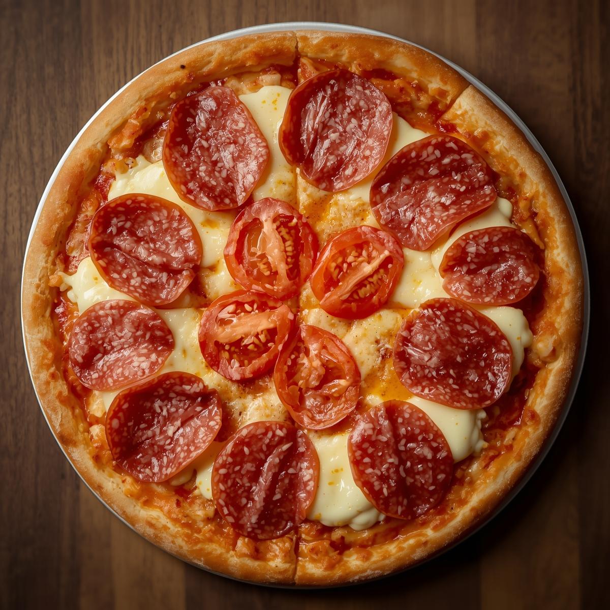 salame cortado, catupiry, mussarela com rodelas de tomate